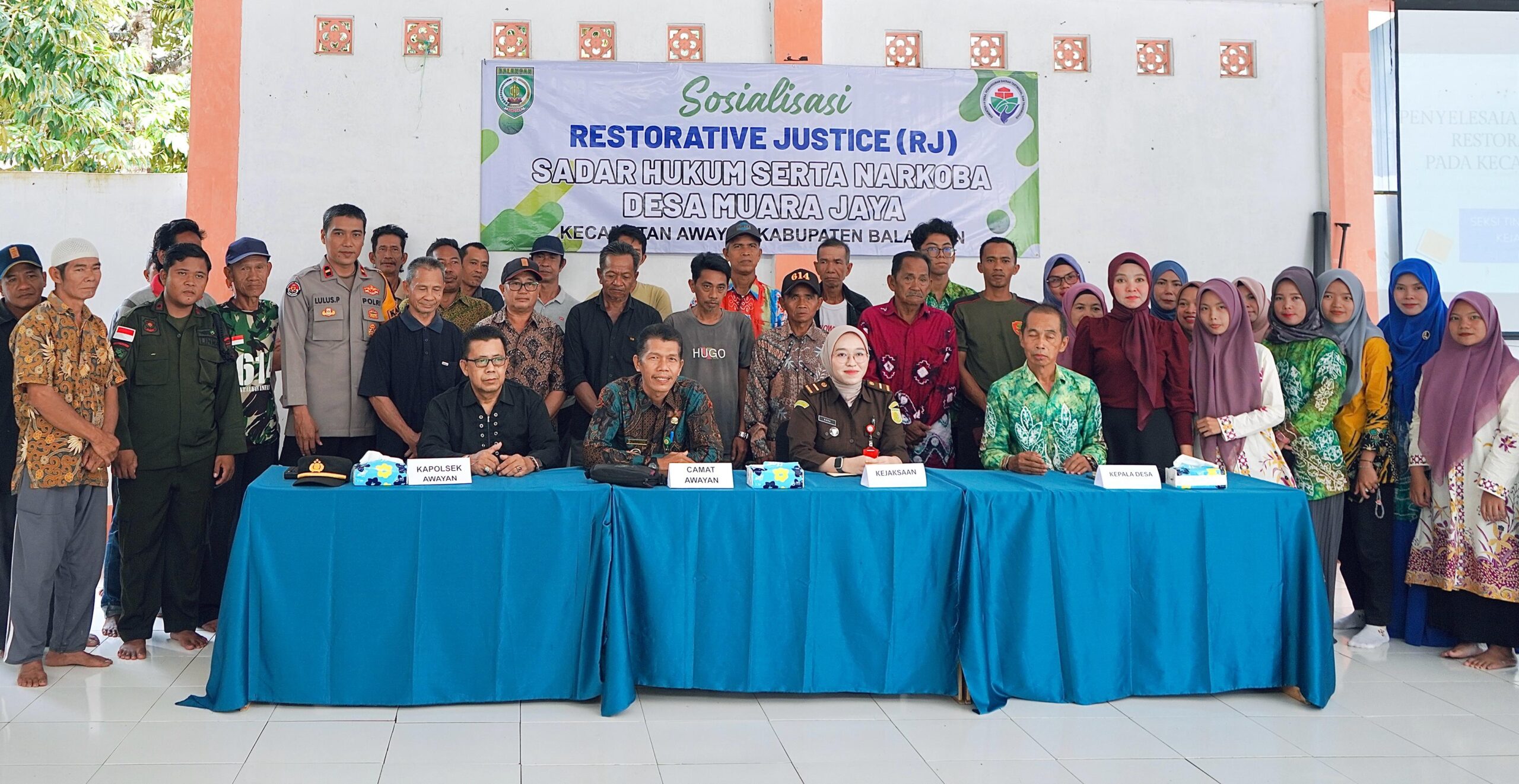 “Kegiatan hari ini dari Pemerintah Desa Muara Jaya, Kecamatan Awayan, ini merupakan kehadiran Pemerintah kita untuk mensosialisasikan hukum termasuk narkoba serta RJ,” katanya.